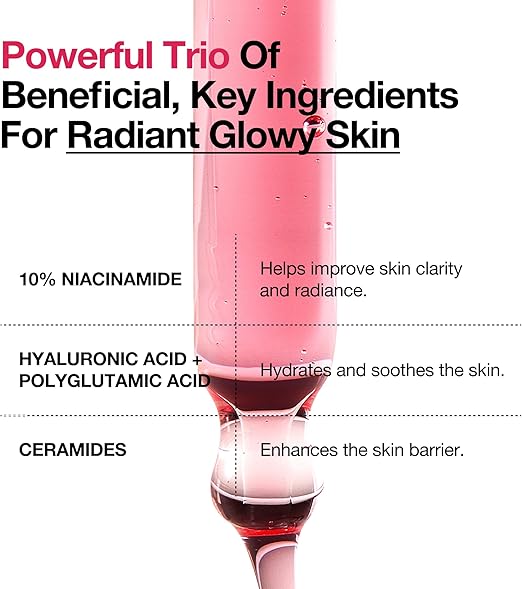 A brightening facial serum formulated with 10% Niacinamide and 4% Tranexamic Acid to target dark spots, uneven skin tone, and dullness. Enriched with Hyaluronic Acid and Ceramides, it provides deep hydration while strengthening the skin barrier, leaving the complexion radiant and smooth.