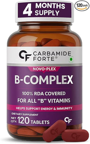 Carbamide Forte Vitamin B Complex Tablets - 100% RDA for B Complex Vitamins with B12, B2, B3, B5, B6, B9 & B1 | Vit B-complex for women & men - 120 Vegetarian Tablets
